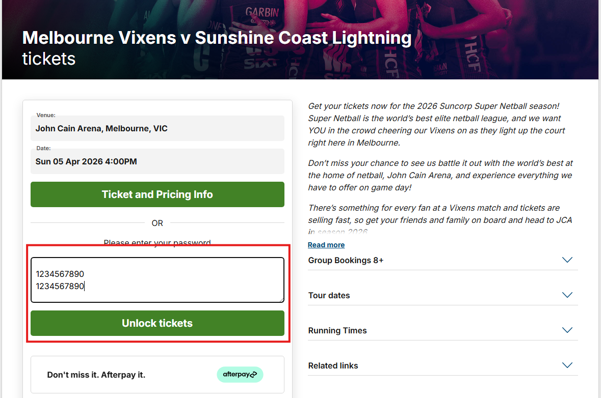 Enter your barcode/s into the password box and click unlock tickets
