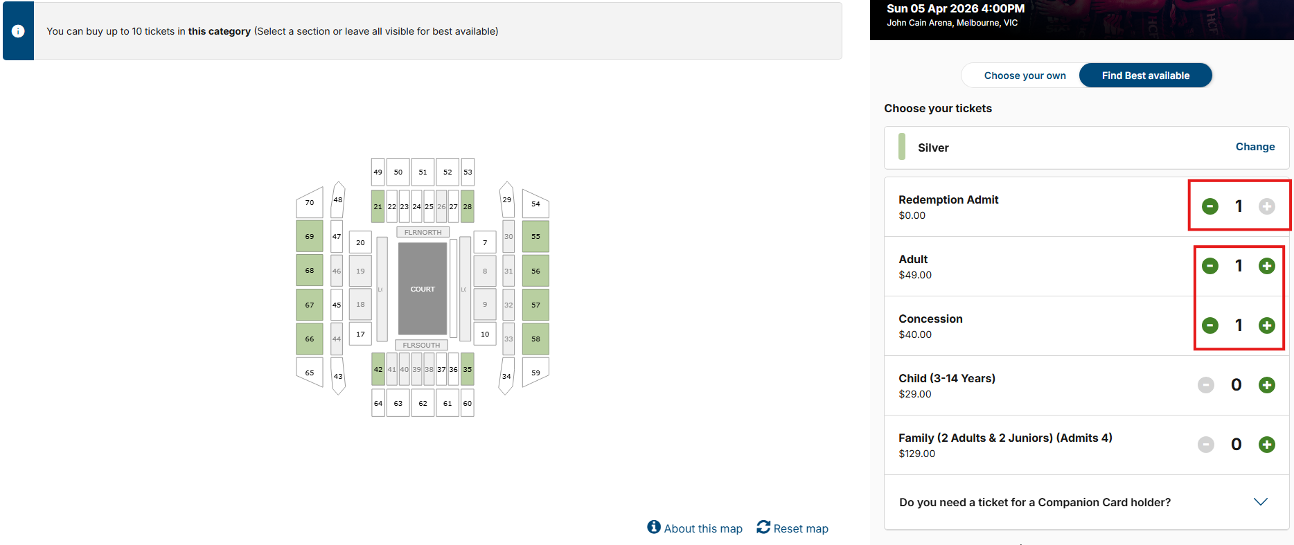 Select redemption option and add additional tickets to your cart